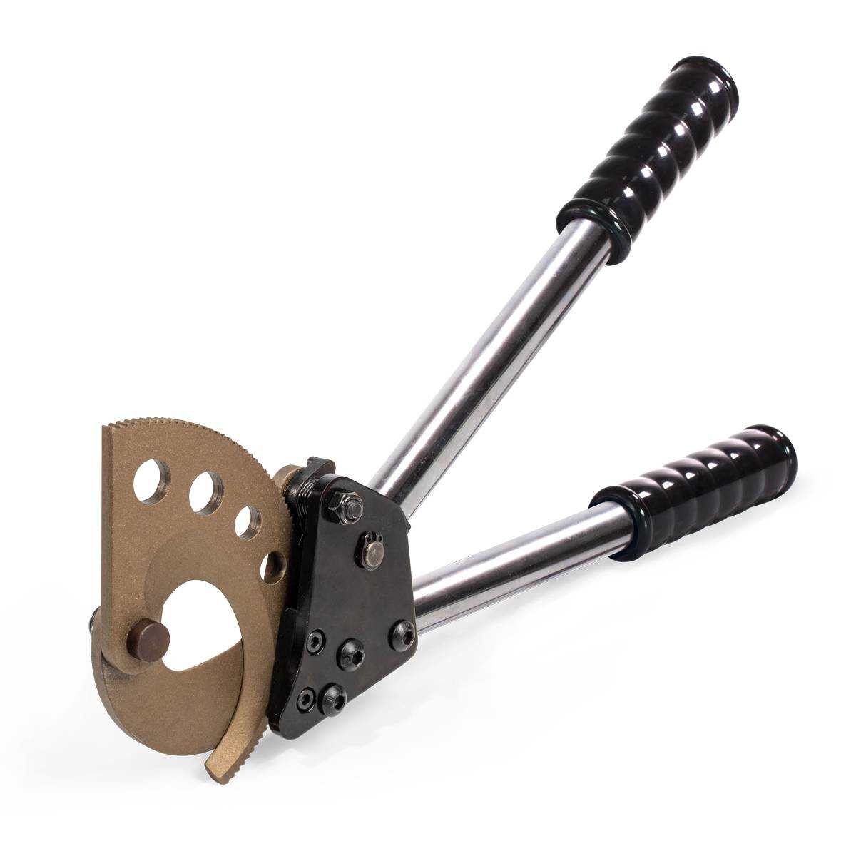 модель: НСТ-38 Серия ПРОФИ - Диапазон резки: - провода АС, АСК, СИП-3 Ø до 38 мм - кабели с проволочной броней Ø до 38 мм - прутки из низкоуглеродистой стали Ø до 8 мм - стальная цепь Ø до 4 мм - Монолезвия повышенной твердости.Твердость лезвий HRC 58…60 - Материал лезвий: специальная закаленная сталь - Специальная термообработка и заточка лезвий - Усовершенствованная конструкция - Функция разблокировки лезвия из любого положения - Блокиратор рукояток - Мощный храповой механизм - Пошаговый ход лезвия - Не предназначены для резки стальных тросов - Упаковка: тканевая водозащитная сумка - Вес: 1.30 кг - Длина: 360 мм Эксплуатационно-гарантийные сроки - Гарантийный срок хранения 5 лет - Гарантийный срок эксплуатации 1 год - Срок службы 3 года SKU товарные позиции Тип инструмента Вид инструмента Разрезаемый материал Диаметр резрезаемого кабеля, max (мм) Диаметр резрезаемого стального прутка, max (мм) Особенности конструкции Длина инструмента, мм 84394 НСТ-38 (КВТ) ножницы секторный ленточная броня/ пруток из низкоуглеродистой стали/ медный кабель/ стальной сердечник/ проволочная броня/ алюминиевый кабель 38 8 лезвия повышенной твердости/ телескопические рукоятки/ храповой механизм 360
