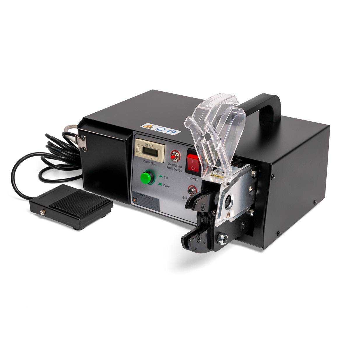 Пресс-клещи электрические для опрессовки наконечников и разъемов матрицами МПК Серия ПРОФИ модель: ПКЭ-01 - Для серийной опрессовки изолированных наконечников, гильз и разъемов, медных трубчатых наконечников, авто¬клемм и др., в зависимости от выбранной матрицы - В комплекте: - электрические пресс-клещи - педаль управления - отвертка - электросетевой кабель - Клещи поставляются без матриц - Совместимость: все матрицы серии МПК (КВТ) - Матрицы приобретаются отдельно - Максимальное усилие: 1.3 т - Счетчик количества опрессовок - Время опрессовки: 2 сек - Два режима работы: ручной и автоматический - Ножной педальный привод - Защитный прозрачный кожух на губках инструмента - Специальный отсек для хранения матриц - Напряжение: 230 В / 50 Гц; 90 Вт - Вес: 13.2 кг - Габариты: 325х310х160 мм Сертификация [ https://kvt.su/prod/electrical-tools/crimpers/insulugs-crimp/pke01/#collapse1-sertificates ] Декларация о соответствии требованиям на пресс-клещи электрические серии ПКЭ (EAC) [ https://lib.net.ru/flipping/?pub=sertificates/sert-eac-pke.pdf ] SKU товарные позиции Тип инструмента Вид привода Коннекторы Тип матрицы Минимальный размер опрессовки, мм² Максимальный размер опрессовки, мм² Краткая характеристика Профиль обжима Особенности конструкции Длина инструмента, мм 87730 ПКЭ-01 серия ПРОФИ [ https://kvt.su/prod/electrical-tools/crimpers/insulugs-crimp/pke01/sku_87730/ ] пресс-клещи электрический втулочные наконечники/ изолированные наконечники и гильзы/ изолированные разъемы/ медные наконечники и гильзы/ коаксиальные разьемы/ двойные втулочные наконечники/ наконечники из листовой меди/ заглушки КИЗ сменная 0.25 16 • Максимальное усилие: 1.3 т • Счетчик количества опрессовок • Время опрессовки: 2 сек • Два режима работы: ручной и автоматический • Ножной педальный привод • Защитный прозрачный кожух на губках инструмента • Специальный отсек для хранения матриц • Напряжение: 230 В / 50 Гц; 90 Вт клиновидный/ трапециевидный/ лепестковый двухконтурный/ овальный двухконтурный/ овальный одноконтурный сменные матрицы/ защитный кожух/ стальная рабочая голова 325 Всего позиций: 1
