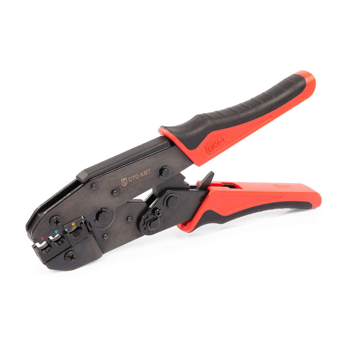 Пресс-клещи СТО-01 серия ПРОФИ (КВТ) Серия ПРОФИ - Классическая конструкция, надежная механика - Материал корпуса: качественная 3-миллиметровая сталь - Храповой механизм, обеспечивающий блокировку обратного хода до завершения полного цикла опрессовки - Устройство разблокировки храпового механизма - Регулятор прижимного усилия матриц - Рельефные двухкомпонентные рукоятки с мягкими вставками из нескользящей термопластрезины - 9 дюймов классического дизайна - Совместимость: все матрицы МПК (КВТ) - Обработка поверхности корпуса: воронение - Вес: 490 г - Длина: 225 мм SKU товарные позиции Тип инструмента Вид привода Тип матрицы Коннекторы Краткая характеристика Профиль обжима Особенности конструкции Матрицы в комллекте Длина инструмента, мм 90747 СТО-01 серия ПРОФИ (КВТ) [ https://techelectro.ru/prod/wiring-tools/crimpers/insulugs-crimp/sto/sku_90747/ ] пресс-клещи механический трехпозиционная/ быстросменная изолированные наконечники и гильзы Опрессовка изолированных наконечников и гильз с красной, синей и желтой манжетами НКИ, НКИ(н), ВНКИ, НВИ, НИК, НШКИ, НШПИ, ГСИ, ГСИ(н), ГСИ-П, ВРПИ-М, ВРПИ-П, ВРШИ-М(н), ВРШИ-П(н), РПИ-М(н), РПИ-П(н) сечением 0.5 - 6 мм² овальный двухконтурный храповой механизм/ возможность использования матриц МПК/ сменные матрицы/ регулятор прижимного усилия/ механизм разблокировки 225