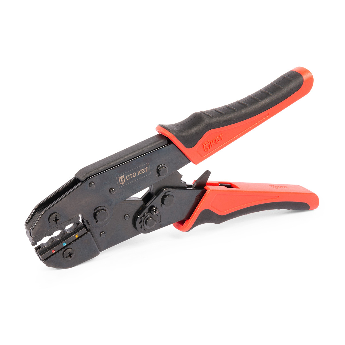 Пресс-клещи СТО-10 серия ПРОФИ (КВТ) Серия ПРОФИ - Классическая конструкция, надежная механика - Материал корпуса: качественная 3-миллиметровая сталь - Храповой механизм, обеспечивающий блокировку обратного хода до завершения полного цикла опрессовки - Устройство разблокировки храпового механизма - Регулятор прижимного усилия матриц - Рельефные двухкомпонентные рукоятки с мягкими вставками из нескользящей термопластрезины - 9 дюймов классического дизайна - Совместимость: все матрицы МПК (КВТ) - Обработка поверхности корпуса: воронение - Вес: 490 г - Длина: 225 мм 90756 СТО-10 серия ПРОФИ (КВТ) [ https://techelectro.ru/prod/wiring-tools/crimpers/insulugs-crimp/sto/sku_90756/ ] пресс-клещи механический быстросменная/ трехпозиционная изолированные наконечники и гильзы/ изолированные разъемы Опрессовка наконечников, разъемов и гильз с термоусаживаемой изоляцией и концевых изолирующих заглушек КИЗ НКИ-Т, НВИ-Т, ГСИ-Т, РПИ-П-Т, РППИ-М-Т, РПИ-М-НТ, РПИ-П-НТ, КИЗ сечением 0.5 - 6 мм² овальный одноконтурный храповой механизм/ возможность использования матриц МПК/ сменные матрицы/ регулятор прижимного усилия/ механизм разблокировки 225