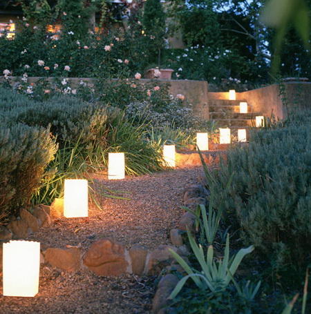 - декоративная, заключающаяся в формировании эстетического восприятия участка за счет подсветки, свечения отдельных объектов или их групп, зонирования при помощи пучков света и т. п.
